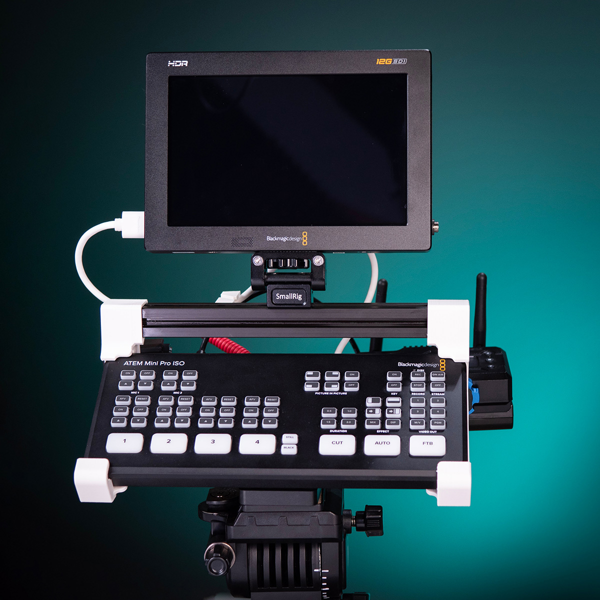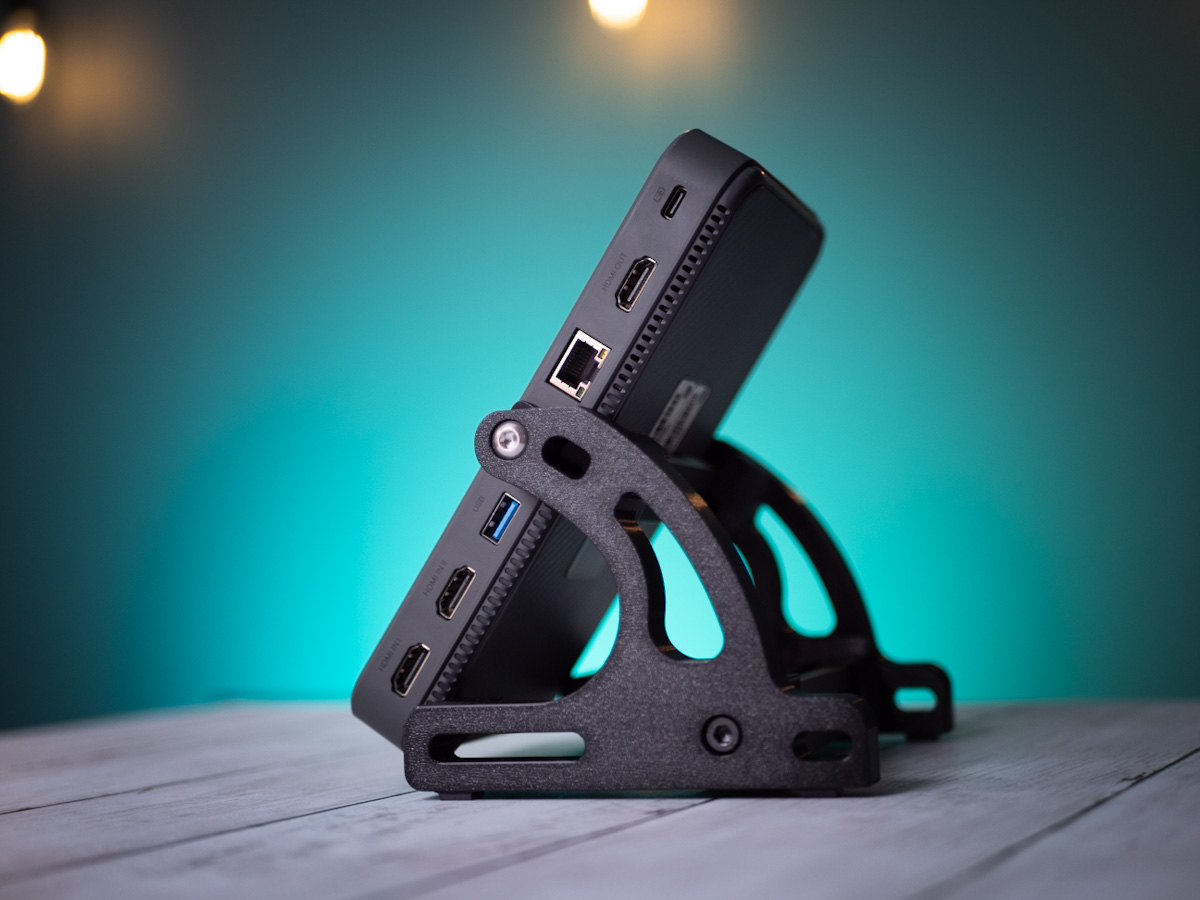 The PK1 Pro Streamer AM is the perfect stand for your ATEM Mini, ATEM Mini Pro, and ATEM Mini Pro ISO. Fitting the original models of the ATEM Mini, this stand lets you attach accessories to the rear and sides, and a monitor on top.