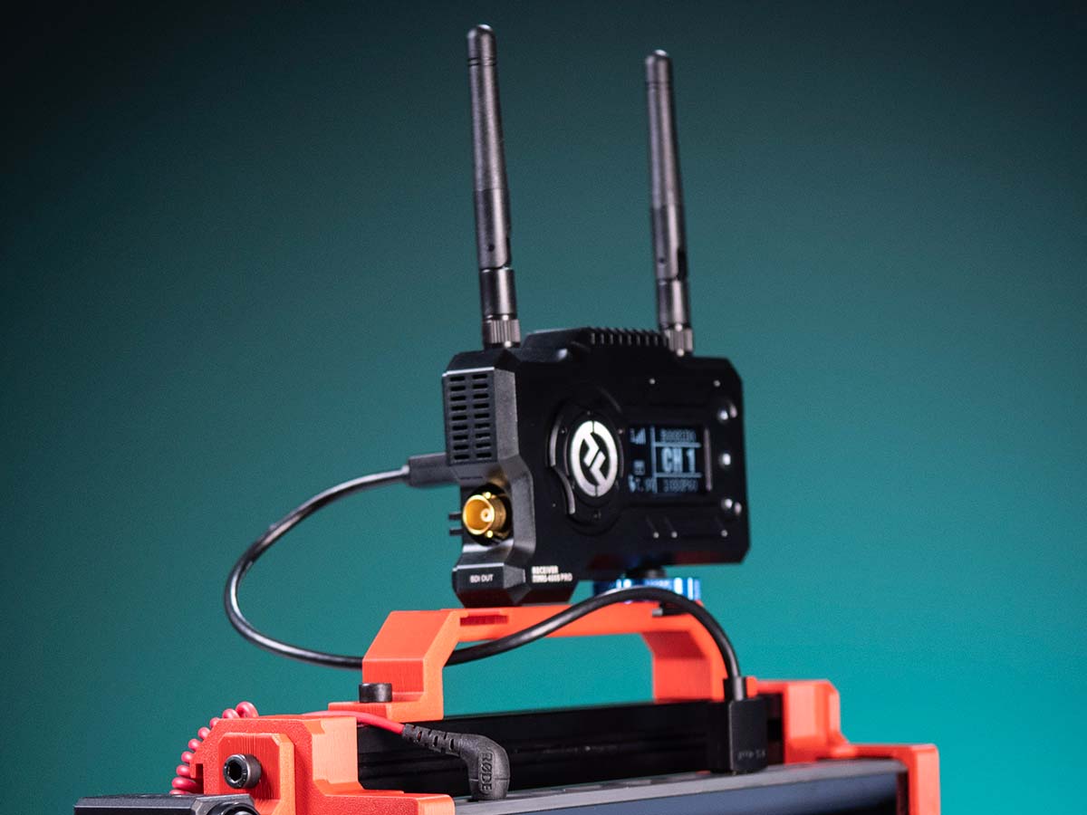 The Hollyland Mars 400s Pro is a great way to get a wireless camera into your YoloBox, and the receiver attaches directly to any of the cold shoe mounts on the cage